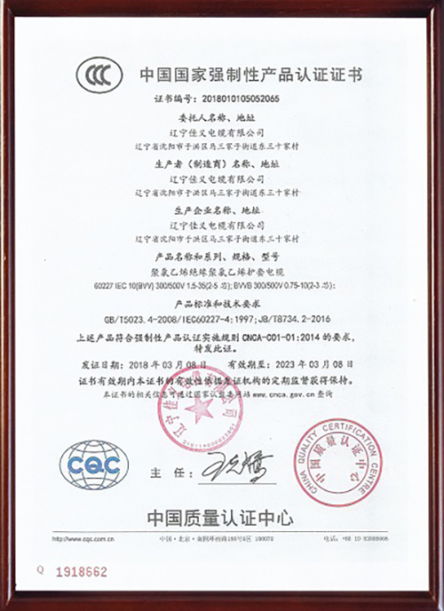 中国国家强制性产品认证证书